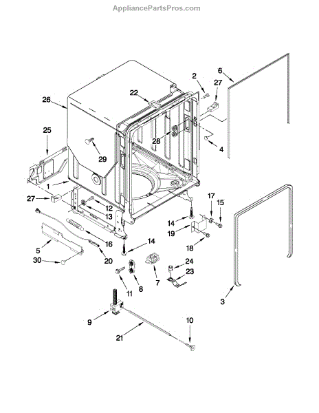 The door balance mount is the side-frame bracket that supports the dishwasher's door counterbalance system. When worn or broken, it can let the door drop, slam, bind, or feel heavy. Replacing it restores smooth, controlled door movement. What it does