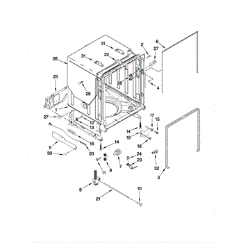 Positions and supports the dishwasher tank assembly to maintain proper alignment. Replace if worn, cracked, or missing to restore correct spacing.