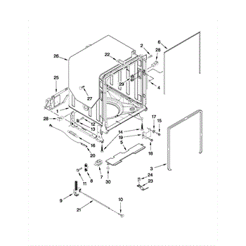 The primary causes of wear or damage to the tub wheel assembly can include regular use, excessive load on the racks, or accidental force applied when loading or unloading dishes. These can lead to broken wheels or dislodged fittings, necessitating replacement to maintain functionality.