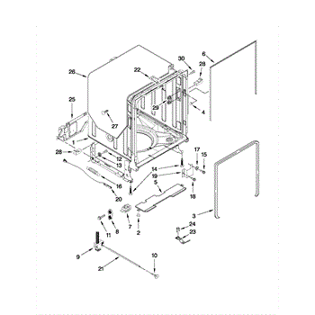 Positions and supports the dishwasher tank assembly to maintain proper alignment. Replace if worn, cracked, or missing to restore correct spacing.