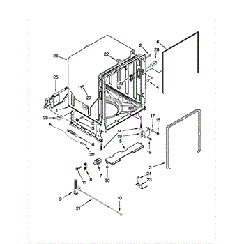 Positions and supports the dishwasher tank assembly to maintain proper alignment. Replace if worn, cracked, or missing to restore correct spacing.