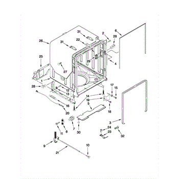 Positions and supports the dishwasher tank assembly to maintain proper alignment. Replace if worn, cracked, or missing to restore correct spacing.