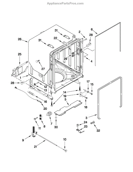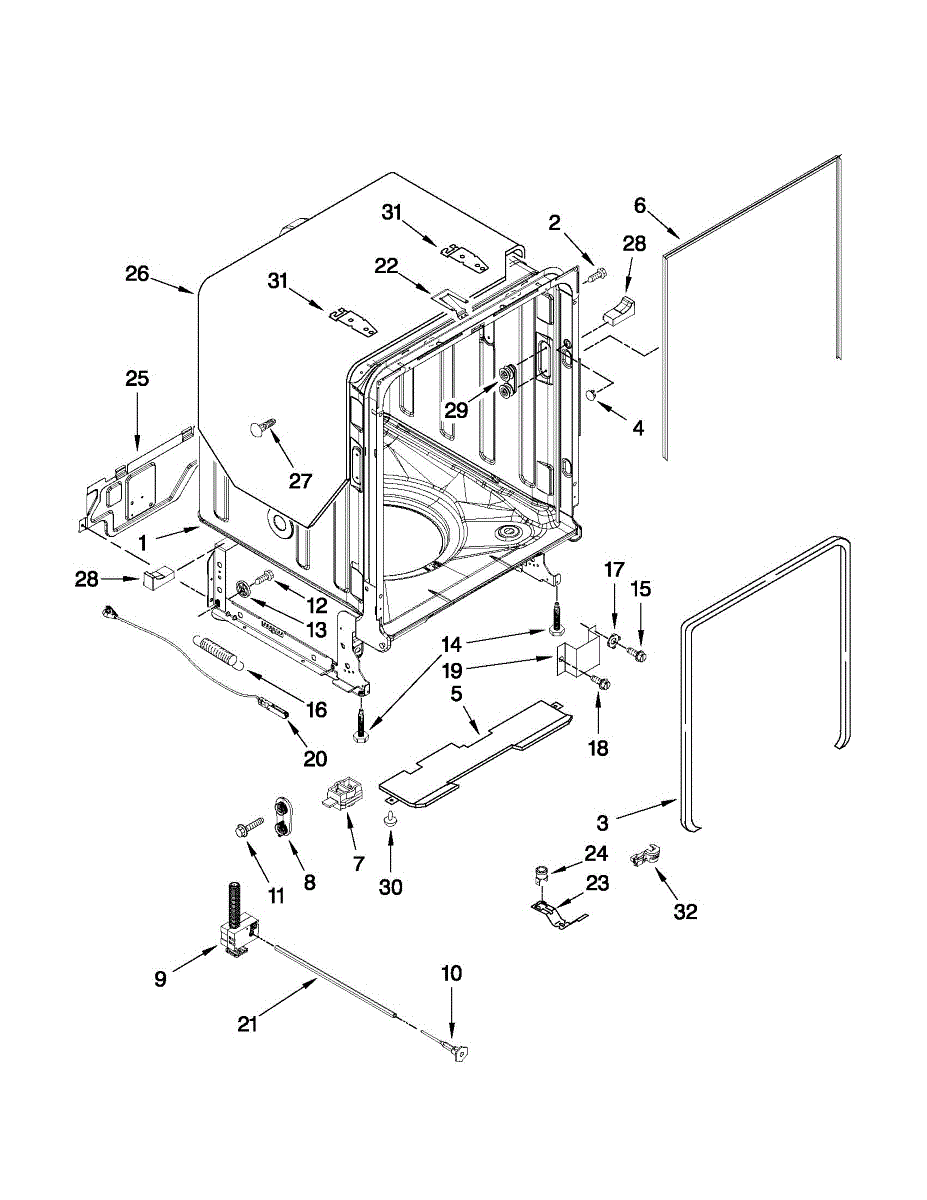 If your dishwasher door drops, slams, or feels heavy, the door balance mount may be broken. This side-frame bracket anchors the spring system.
