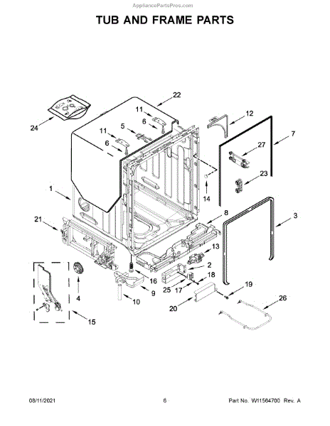 Structural bracket that secures internal dishwasher components and maintains proper alignment. Replace if cracked, broken, or missing to restore fit.