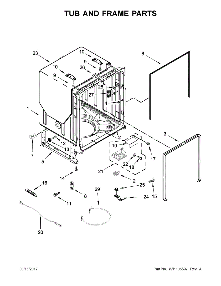 Prevents water leaks around your dishwasher door. Replace if you notice pooling water on the floor or visible cracks in the seal. Verify fit by model number.
