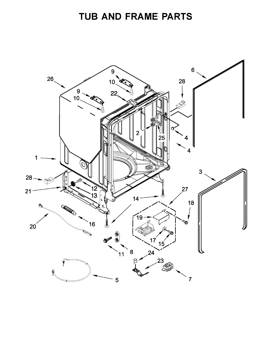 Parts for Kenmore 665.14759N511 (66514759N511, 665 14759N511): Tub And Frame Parts