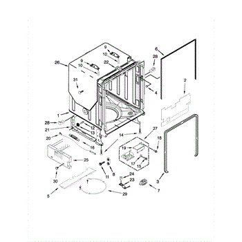 Positions and supports the dishwasher tank assembly to maintain proper alignment. Replace if worn, cracked, or missing to restore correct spacing.