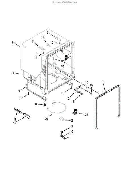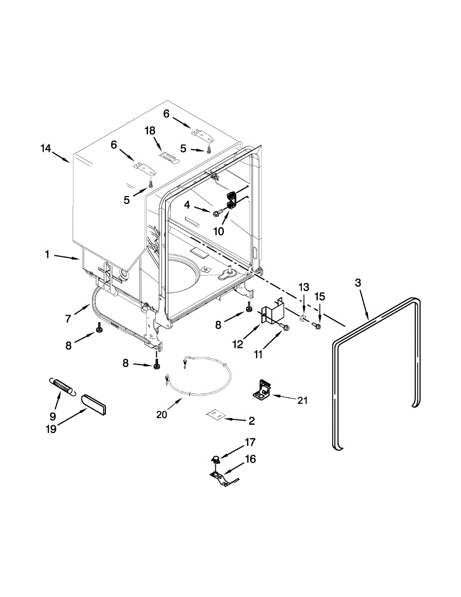 Complete dishwasher tub assembly. Replaces cracked, leaking, or damaged tubs that cannot be reliably repaired due to heat and detergent exposure.