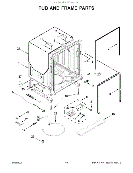 The door balance mount is the side-frame bracket that supports the dishwasher's door counterbalance system. When worn or broken, it can let the door drop, slam, bind, or feel heavy. Replacing it restores smooth, controlled door movement. What it does