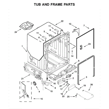 The Tub Gasket is an OEM part for Whirlpool dishwashers. It seals the space between the washer tub and the surrounding door frame to prevent leaks. During wash cycles, water, heat, and detergent can degrade this rubber gasket material over time.