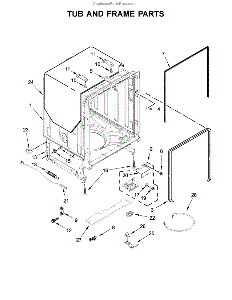 The door balance mount is the side-frame bracket that supports the dishwasher's door counterbalance system. When worn or broken, it can let the door drop, slam, bind, or feel heavy. Replacing it restores smooth, controlled door movement. What it does