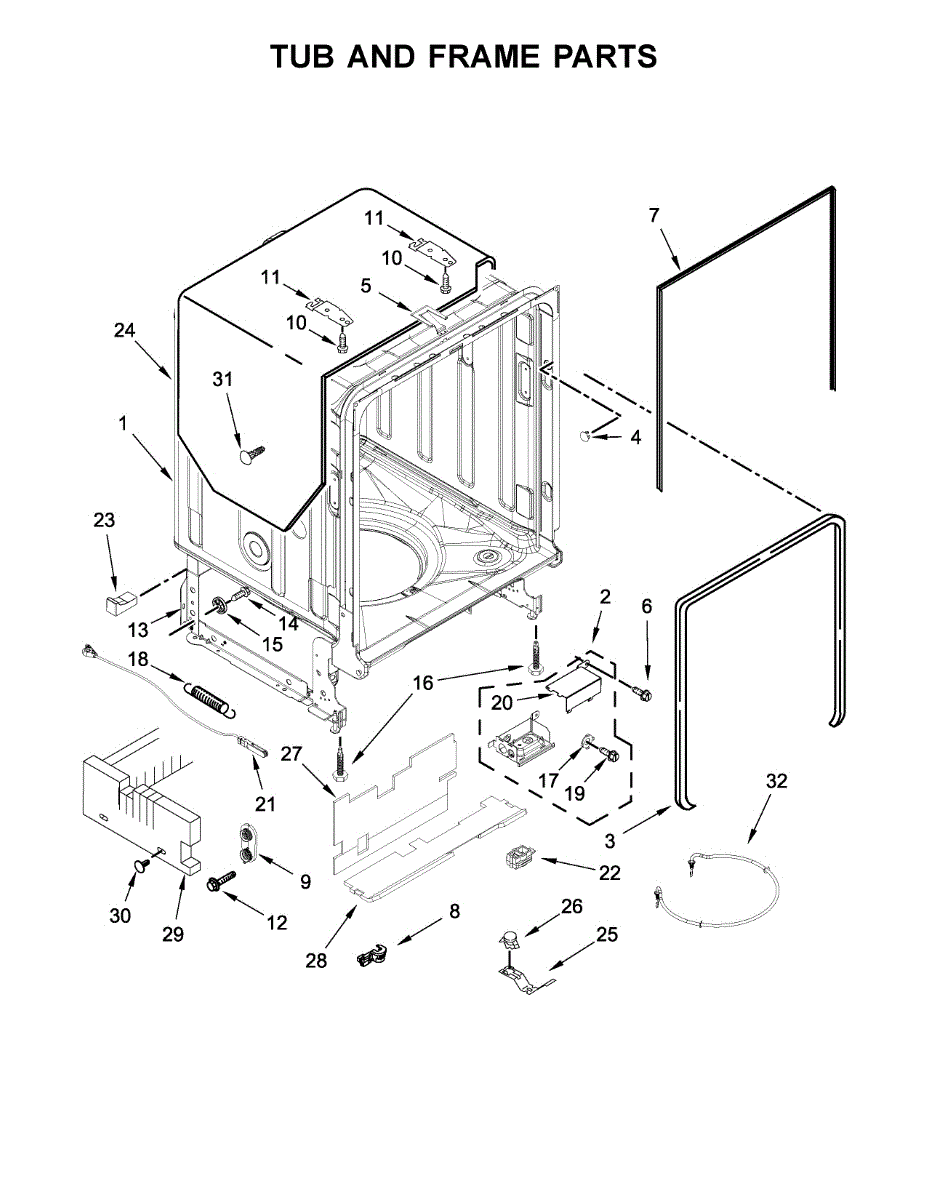 The door balance mount is the side-frame bracket that supports the dishwasher's door counterbalance system. When worn or broken, it can let the door drop, slam, bind, or feel heavy. Replacing it restores smooth, controlled door movement. What it does