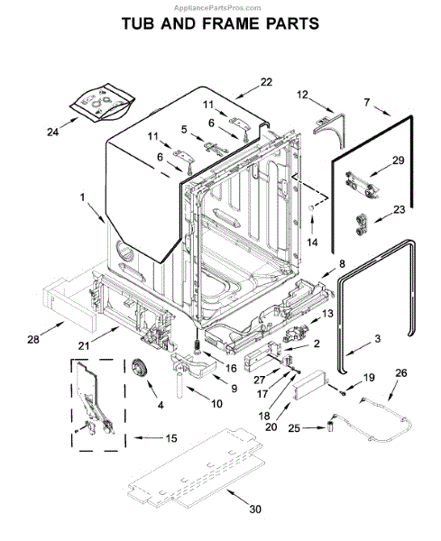 The Dishwasher Drip Tray is an OEM part for Whirlpool dishwashers. It collects excess water and rinse aid during the wash and rinse cycles, protecting internal components from exposure to liquids. As a critical part, the drip tray supports smooth drainage and prevents puddling inside the dishwasher.