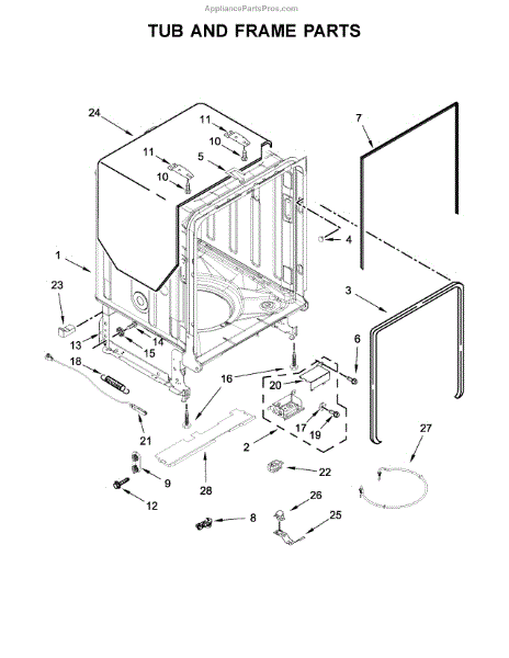 Parts for Kitchenaid KDTE234GPS0: Tub And Frame Parts