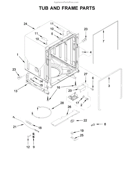 The Dishwasher Door Seal is an OEM replacement part for Whirlpool dishwashers. It provides a tight seal around the dishwasher door to prevent water, sound, and heat from escaping during the wash cycle. Measuring 71” in length (and stretching up to 75”), this door seal prevents water from leaking out during wash cycles.