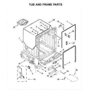 The Tub Gasket is an OEM part for Whirlpool dishwashers. It seals the space between the washer tub and the surrounding door frame to prevent leaks. During wash cycles, water, heat, and detergent can degrade this rubber gasket material over time.