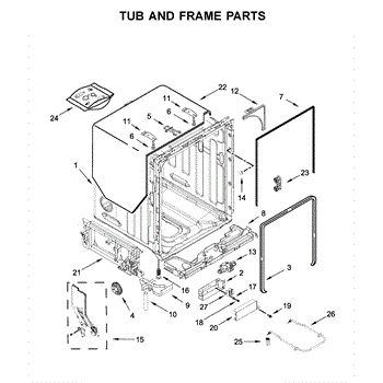 The Tub Gasket is an OEM part for Whirlpool dishwashers. It seals the space between the washer tub and the surrounding door frame to prevent leaks. During wash cycles, water, heat, and detergent can degrade this rubber gasket material over time.