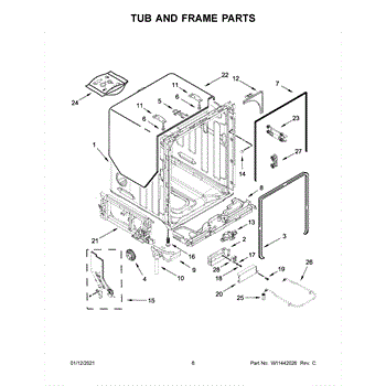 The Tub Gasket is an OEM part for Whirlpool dishwashers. It seals the space between the washer tub and the surrounding door frame to prevent leaks. During wash cycles, water, heat, and detergent can degrade this rubber gasket material over time.