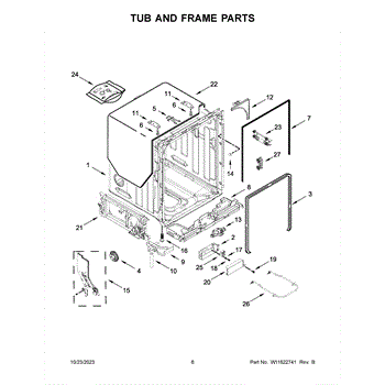 The Tub Gasket is an OEM part for Whirlpool dishwashers. It seals the space between the washer tub and the surrounding door frame to prevent leaks. During wash cycles, water, heat, and detergent can degrade this rubber gasket material over time.