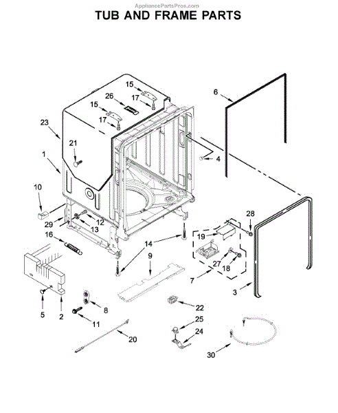 The door balance mount is the side-frame bracket that supports the dishwasher's door counterbalance system. When worn or broken, it can let the door drop, slam, bind, or feel heavy. Replacing it restores smooth, controlled door movement. What it does
