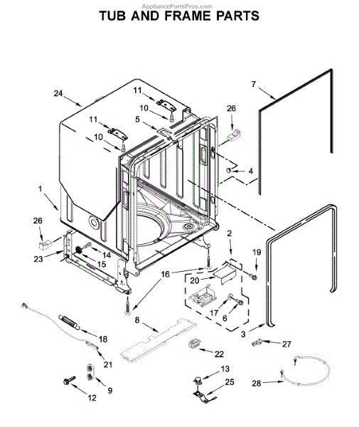 The door balance mount is the side-frame bracket that supports the dishwasher's door counterbalance system. When worn or broken, it can let the door drop, slam, bind, or feel heavy. Replacing it restores smooth, controlled door movement. What it does