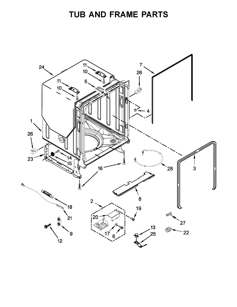 The door balance mount is the side-frame bracket that supports the dishwasher's door counterbalance system. When worn or broken, it can let the door drop, slam, bind, or feel heavy. Replacing it restores smooth, controlled door movement. What it does
