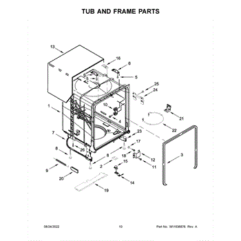 Front-mounting shield that covers and secures sound-dampening insulation at the base of the dishwasher tub. Replace if cracked, broken, or missing.