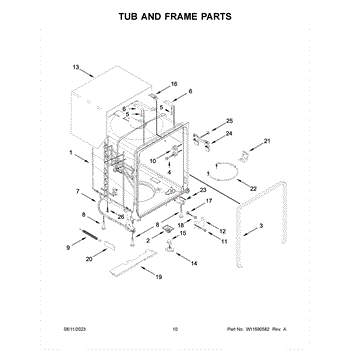 Front-mounting shield that covers and secures sound-dampening insulation at the base of the dishwasher tub. Replace if cracked, broken, or missing.