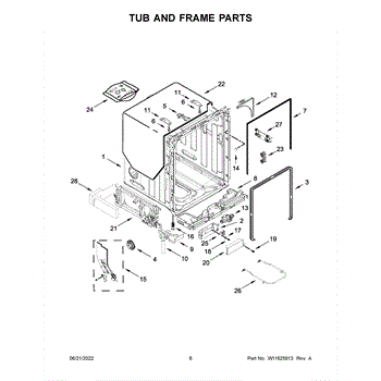 The Tub Gasket is an OEM part for Whirlpool dishwashers. It seals the space between the washer tub and the surrounding door frame to prevent leaks. During wash cycles, water, heat, and detergent can degrade this rubber gasket material over time.