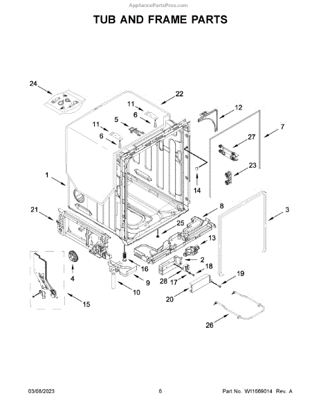 Structural bracket that secures internal dishwasher components and maintains proper alignment. Replace if cracked, broken, or missing to restore fit.
