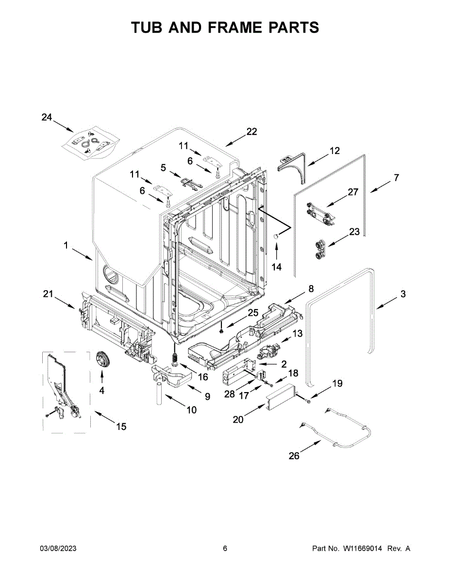 Seals the dishwasher tub to the door frame, preventing leaks during wash cycles. Replace if you notice water dripping or cracks in the rubber seal.