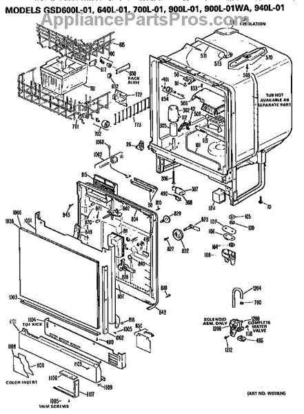 Parts for Ge GSD900L01WA: Tub / Front Panel Parts