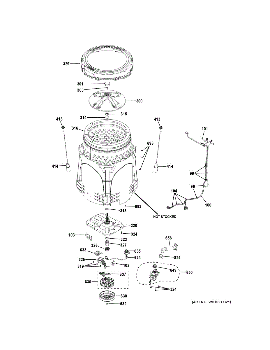 The Internal Drain Hose Asm is an OEM part for GE washers. It is the hose located inside the washer that channels drained water from the tub out to the external drain system.