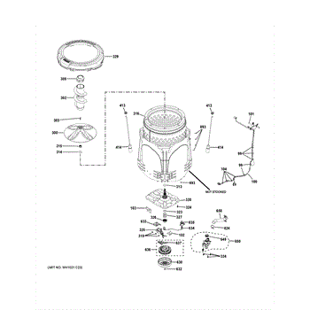 The Internal Drain Hose Asm is an OEM part for GE washers. It is the hose located inside the washer that channels drained water from the tub out to the external drain system.