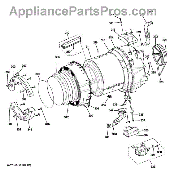 Parts for Ge GFWN1000L0WW: 04 - Tub & Motor Parts