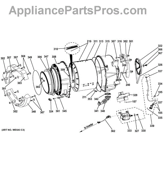 The Drive Pulley Kit is an OEM part for GE washing machines. The drive pulley works by transferring the motor's power to the drum via the drive belt, ensuring the drum rotates properly during the wash and spin cycles.