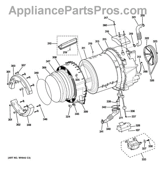 This is a gasket made for use with washing machines. This particular gasket fits between the washer tub and the door, forming a seal that prevents leaks. Over time, gaskets are subject to wear and tear that can cause them to become brittle, rip, tear, warp, or otherwise be rendered ineffective. If the user notices that there is water leaking from the washing machine door during use, or the gasket is displaying visible signs of wear and tear, replace this part immediately. No tools are required to install this gasket.This gasket is manufactured from high-quality, durable, non-corrosive materials to ensure the best possible quality. This part is manufactured by General Electric and has been sourced directly from the manufacturer. It is sold individually and compatible with washers from General Electric, Hotpoint, and RCA.