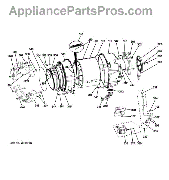 Parts for Ge PFWS4605L0MG: 05 - Tub & Motor Parts