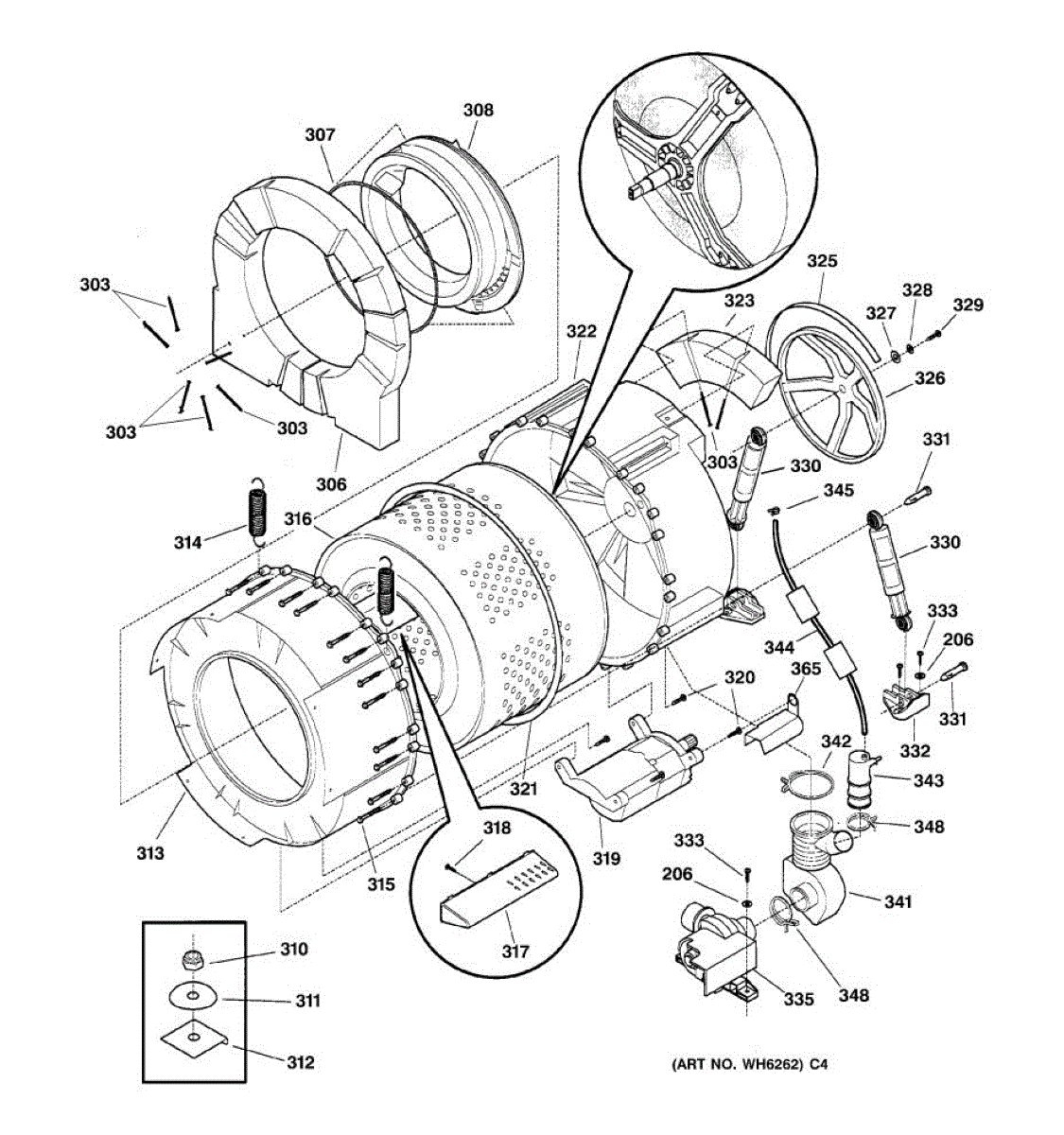 Parts for Ge WCCH404V0WW: 03 - Tub & Motor Parts