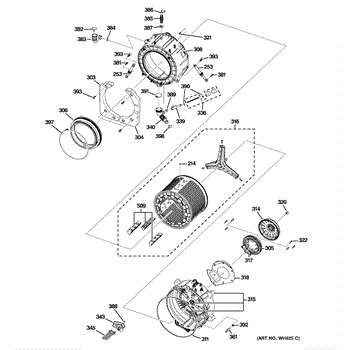 This basket assembly is a genuine OEM replacement part sourced directly from the manufacturer for use in front-load washing machines. This assembly is part of the washer's drive system. It is on top of the clutch and transmission system. It contains the spin tube shaft and brake system for the spin basket. If the washing machine is making loud noises during the spin cycle or won't spin at all, the basket assembly should be replaced. A screwdriver, socket wrench set and ratchet, hammer, and spanner wrench are needed to make this repair. Disconnect the water and power to the washing machine. Wear work gloves when making these repairs. Make sure the machine is pulled away from the wall, and there is plenty of room to work while disassembling the machine. Remove the top console and then the washing machine cabinet. Take the tub ring and agitator off the machine. Remove the spin basket and drive block and release the drive block. Remove and replace the basket drive. Reverse the order and reassemble the washing machine. Reconnect the power and water. This basket assembly is sold individually. It is designed for washing machines manufactured by General Electric.