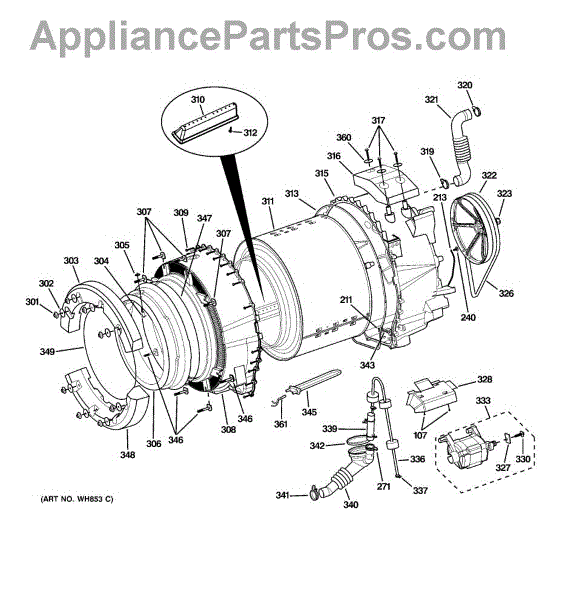 The Door Boot Seal is an OEM part for GE washing machines. This seal is positioned around the door opening of front-load washers, creating a watertight barrier that prevents water from leaking during wash cycles. It also helps to reduce noise and vibration, ensuring smooth and efficient operation.