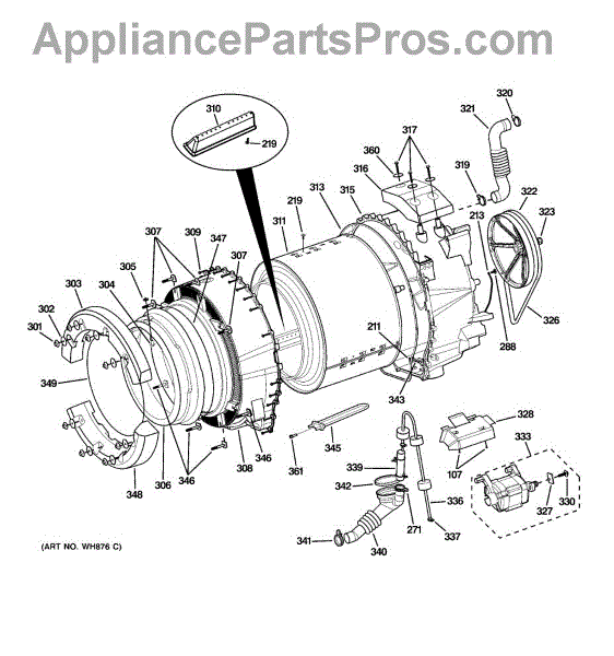 Parts for Ge WCVH6600H1WW: 04 - Tub & Motor Parts