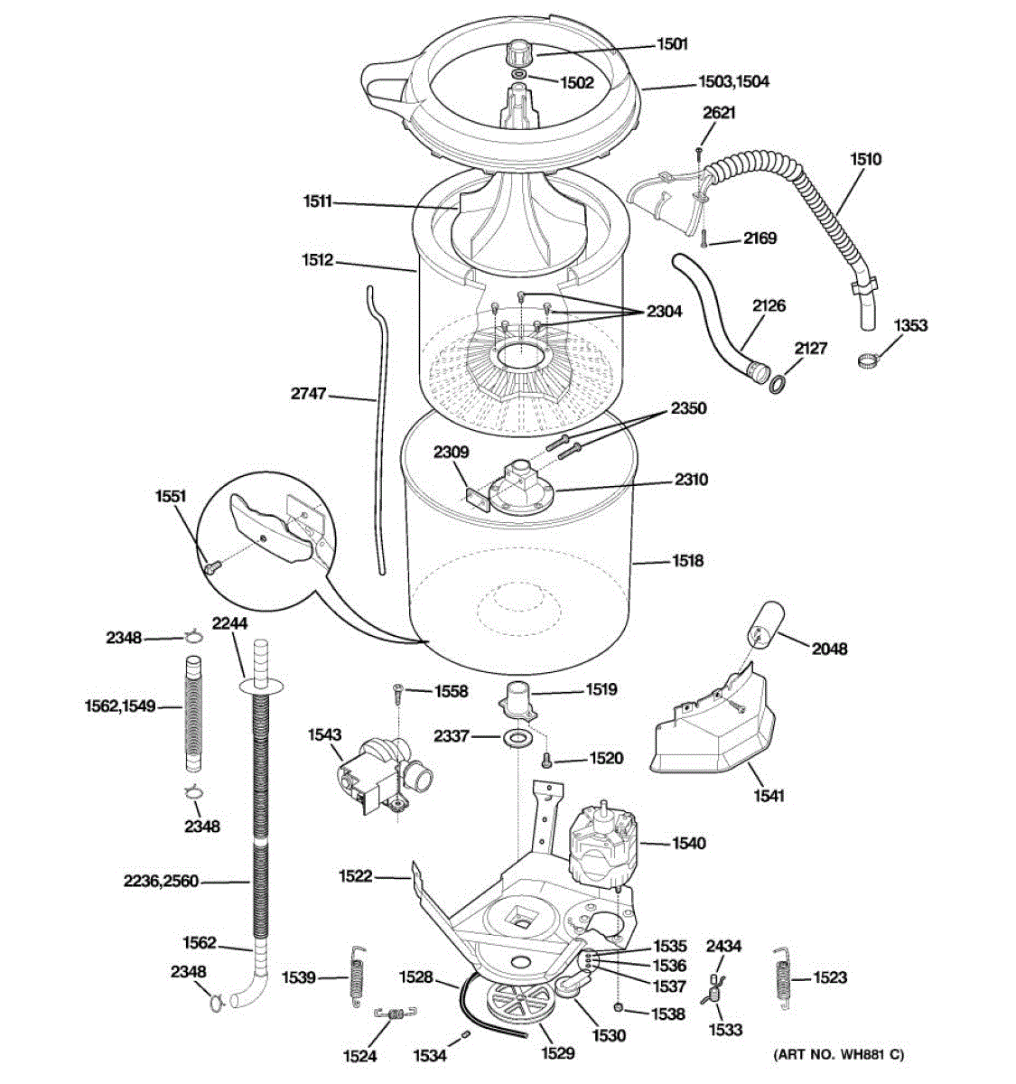 Parts for Ge WSM2700HAWWW: 05 - Tub & Motor Parts