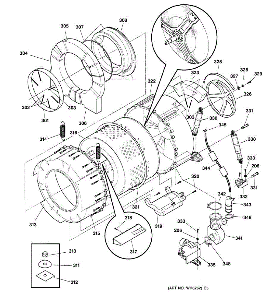 Parts for Ge WSXH208A1WW: 03 - Tub & Motor Parts