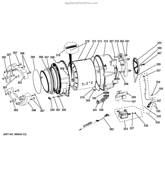 The Door Gasket is an OEM replacement part for GE front-load washing machines. It is installed around the perimeter of the machine's door, creating a watertight seal when the door is closed. This prevents water from leaking out of the washing machine during operation, ensuring efficient and mess-free wash cycles. Symptoms of a bad Door Gasket include: