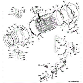 The Tub Front is an OEM part for GE washing machines. This component forms the front panel of the washing machine tub and helps securely hold the door in place. As one of the primary structural elements of the washing machine, the tub front is responsible for maintaining the integrity of the tub assembly and containing water during wash cycles.