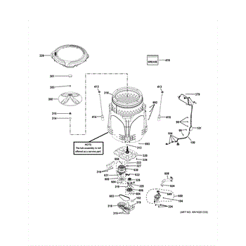 The Transmission Assembly is an OEM part for GE washing machines. It is responsible for transferring power from the motor to the washer's agitator or drum, enabling the wash and spin cycles. This assembly ensures that the washer moves through the various stages of the cycle, allowing for thorough cleaning of laundry.