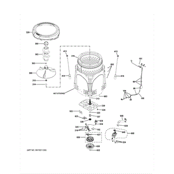 The Impeller/Auger Base is an OEM part for GE washing machines. It is responsible for agitating the laundry within the wash tub, ensuring thorough cleaning by rotating and moving the clothes through the water and detergent.