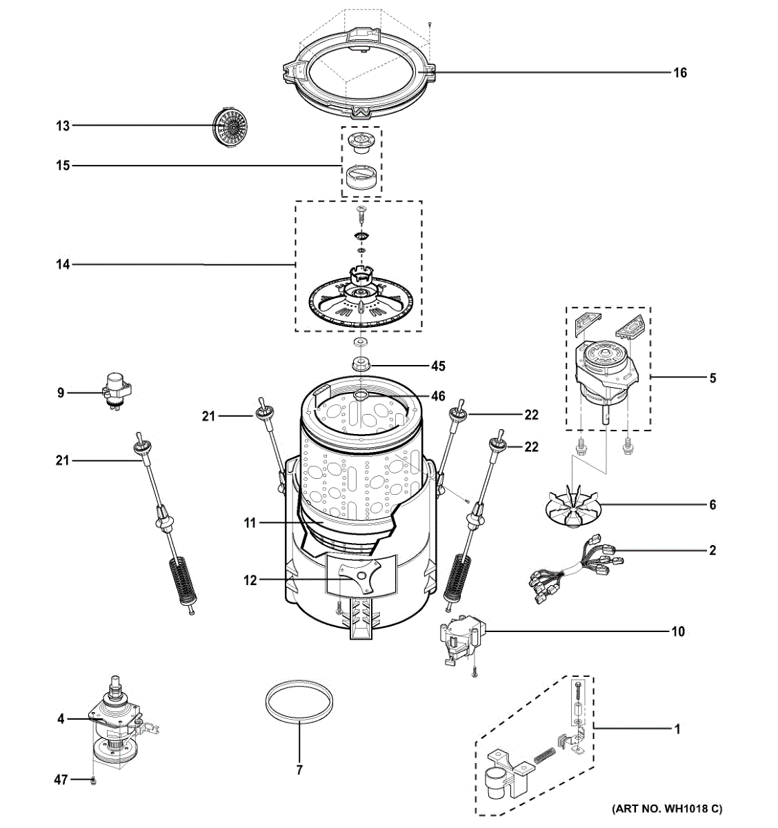 This suspension assembly supports the washer tub and helps stabilize the appliance during the spin cycle to reduce vibration and drum movement. It restores proper tub positioning for smoother, quieter operation. What it does: