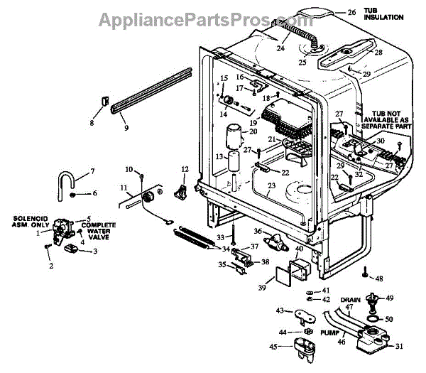 Parts for Caloric DUS600B,WW/P1173718W: Tub Parts